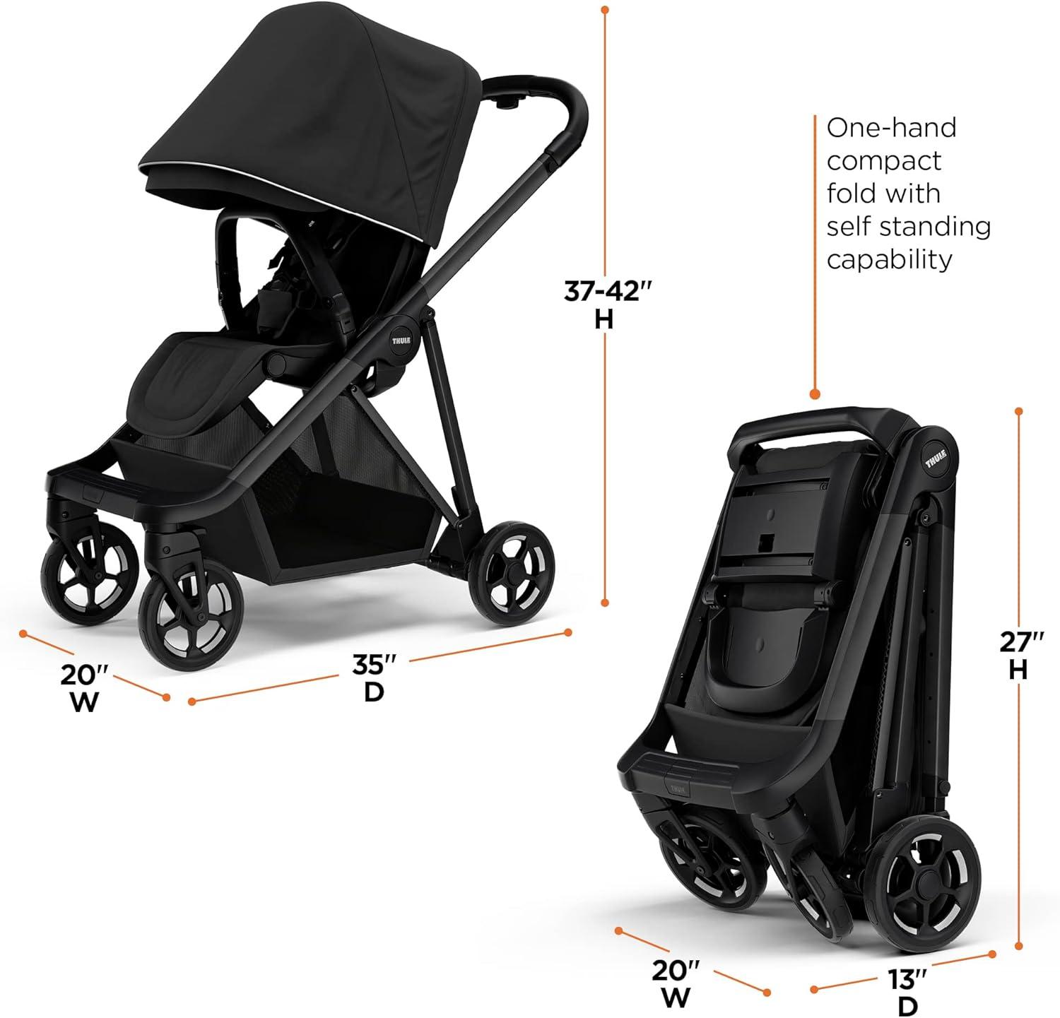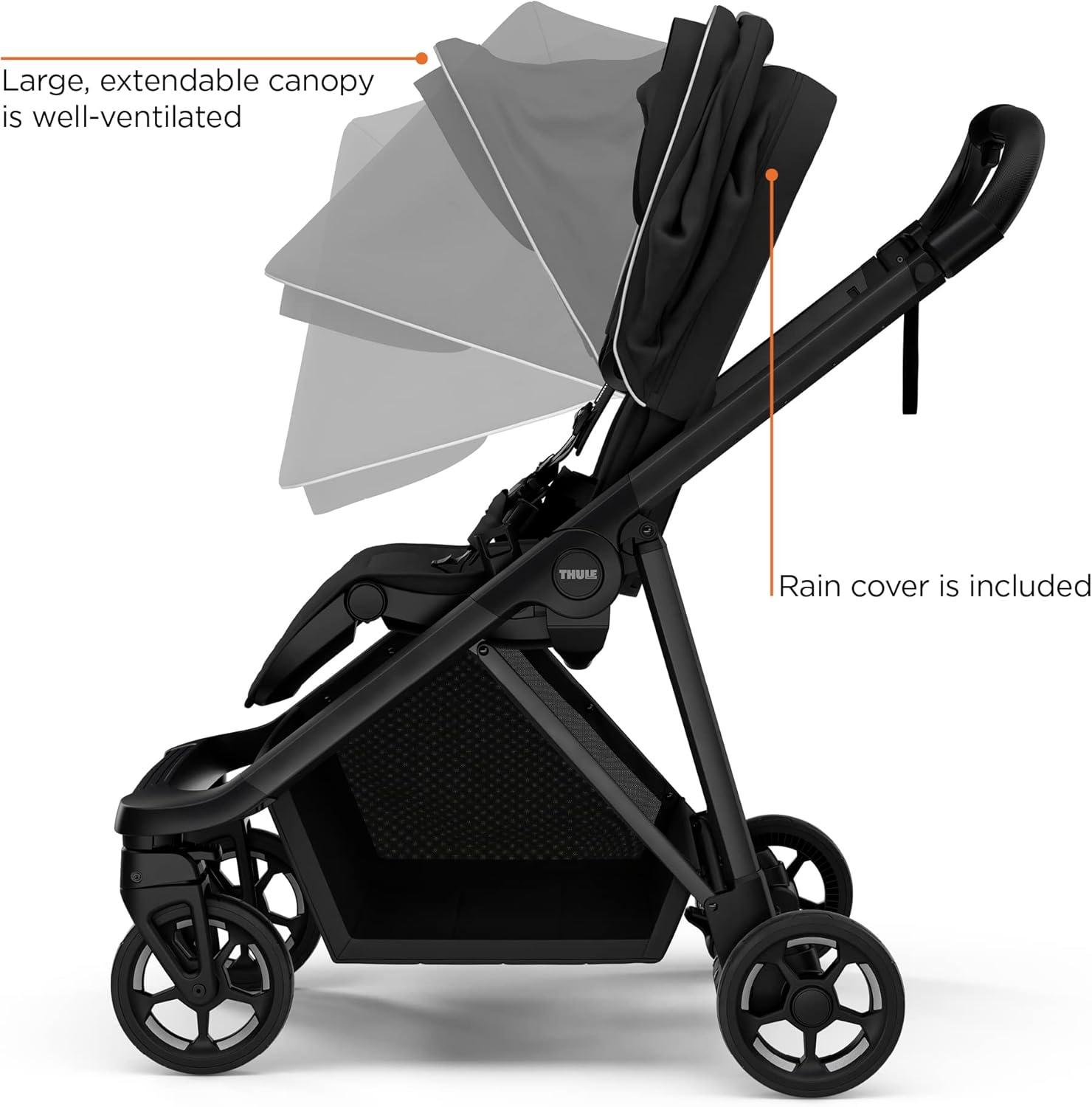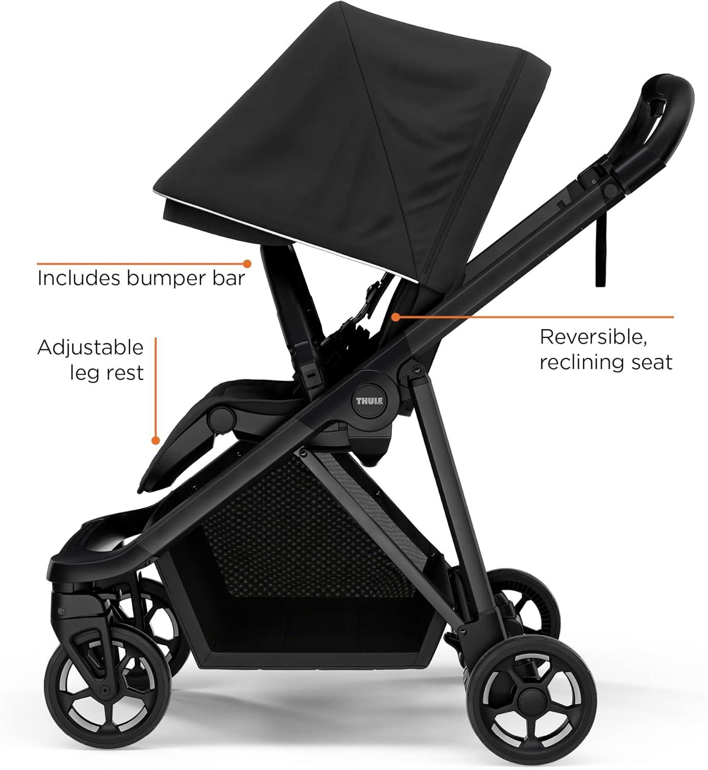 Thule Shine baby stroller, Full-size stroller features, Compact and lightweight design, Reversible seat, Spacious storage basket, Adjustable leg rest, Easy one-hand fold(Black/Black)