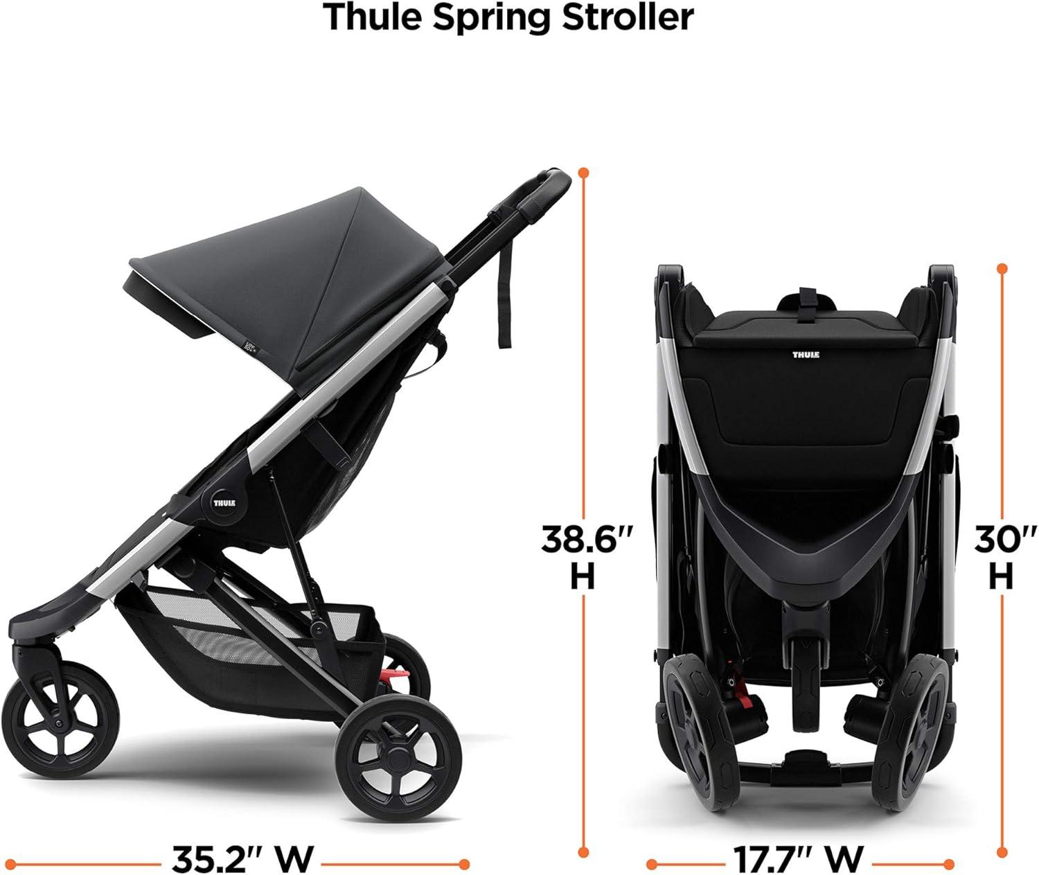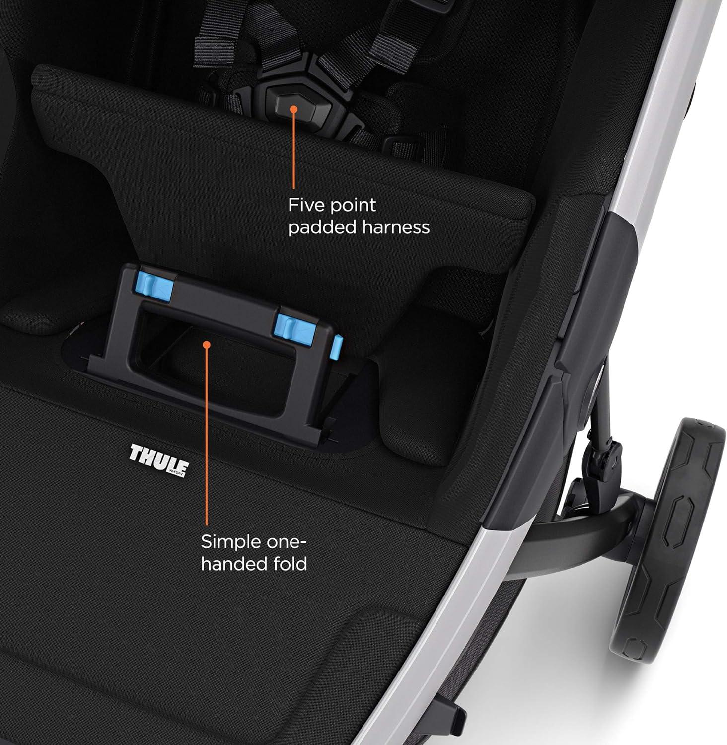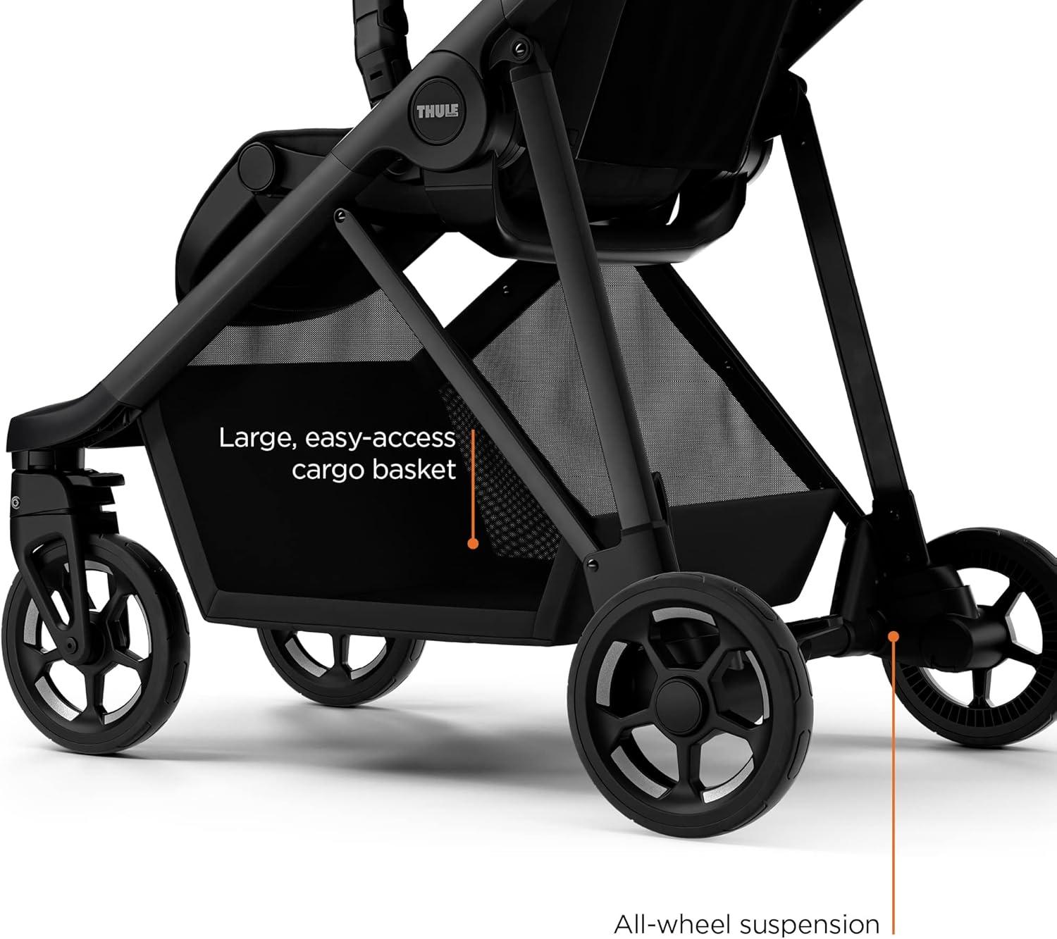 Thule Shine baby stroller, Full-size stroller features, Compact and lightweight design, Reversible seat, Spacious storage basket, Adjustable leg rest, Easy one-hand fold(Black/Black)