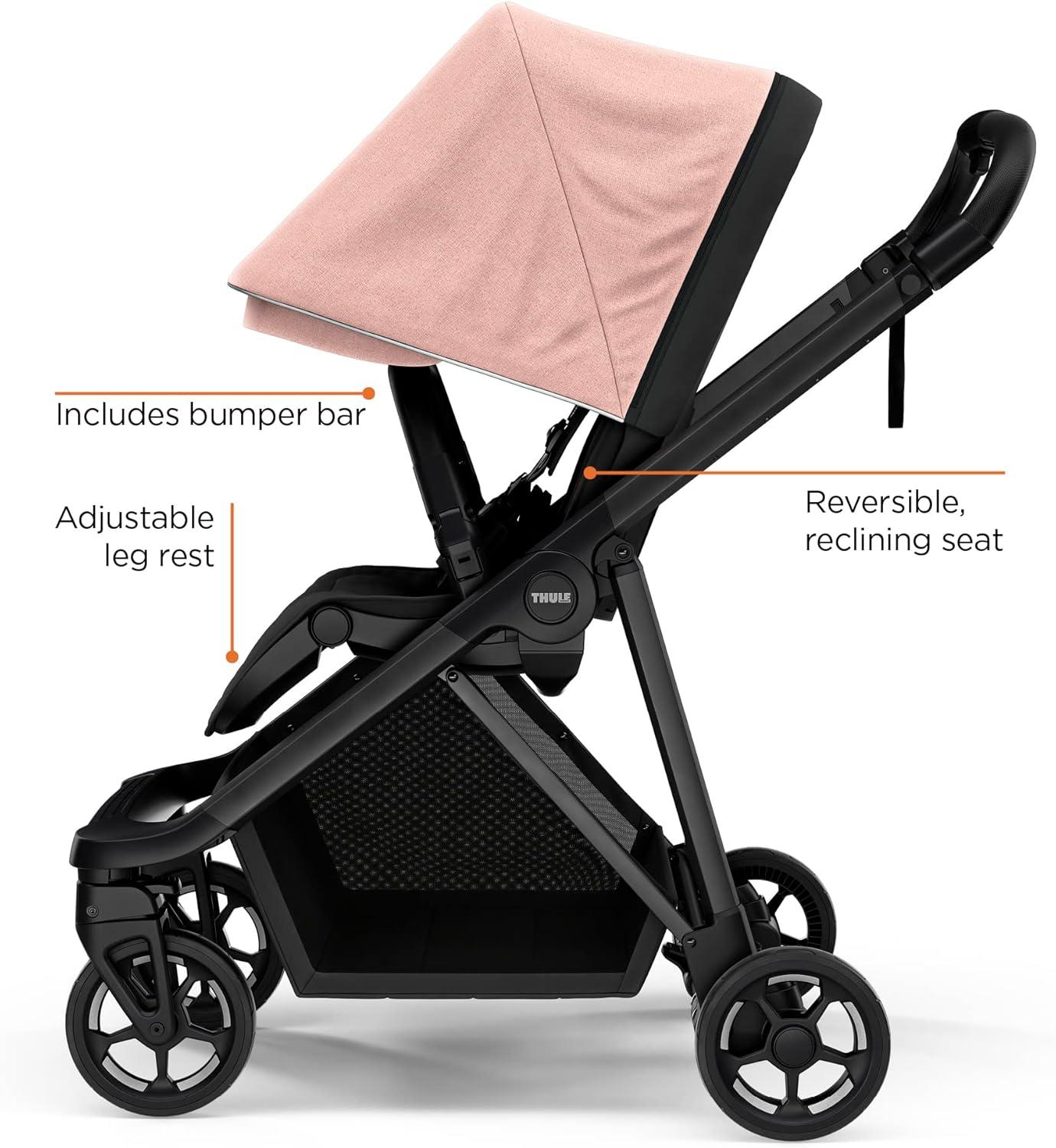 Thule Shine baby stroller, Full-size stroller features, Compact and lightweight design, Reversible seat, Spacious storage basket, Adjustable leg rest, Easy one-hand fold(Black/Misty Rose)