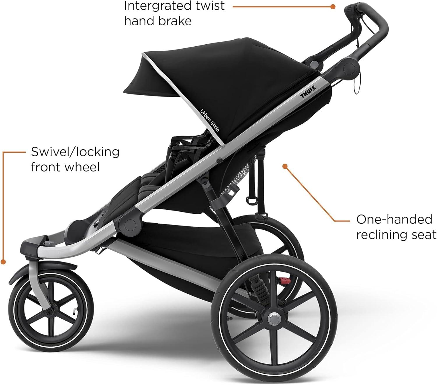 Thule Urban Glide 4-Wheel Single Child All-Terrain Stroller, Full-Suspension System, Air-Filled Tires, Upright seat with Adjustable Recline and Built-in Leg Rest, Baby Stroller(Black)