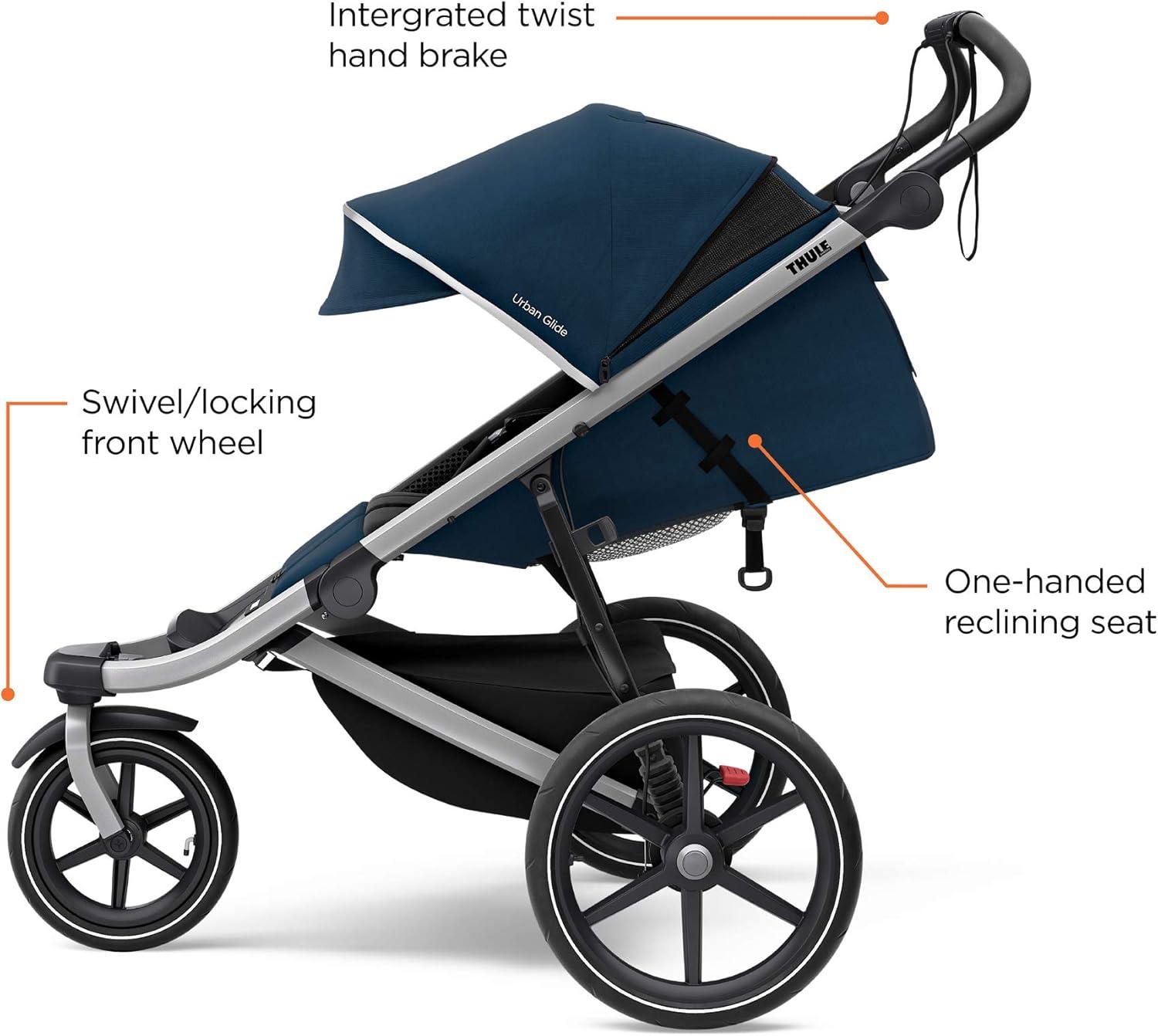 Thule Urban Glide 3 Single Child All-Terrain Stroller, Full-Suspension System, Air-Filled Tires, Upright seat with Adjustable Recline and Built-in legrest, Black(MID BLUE)