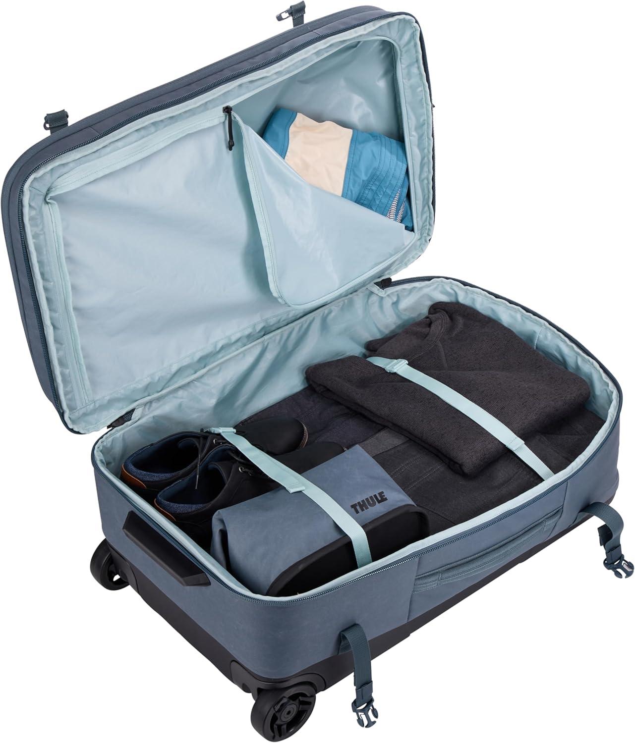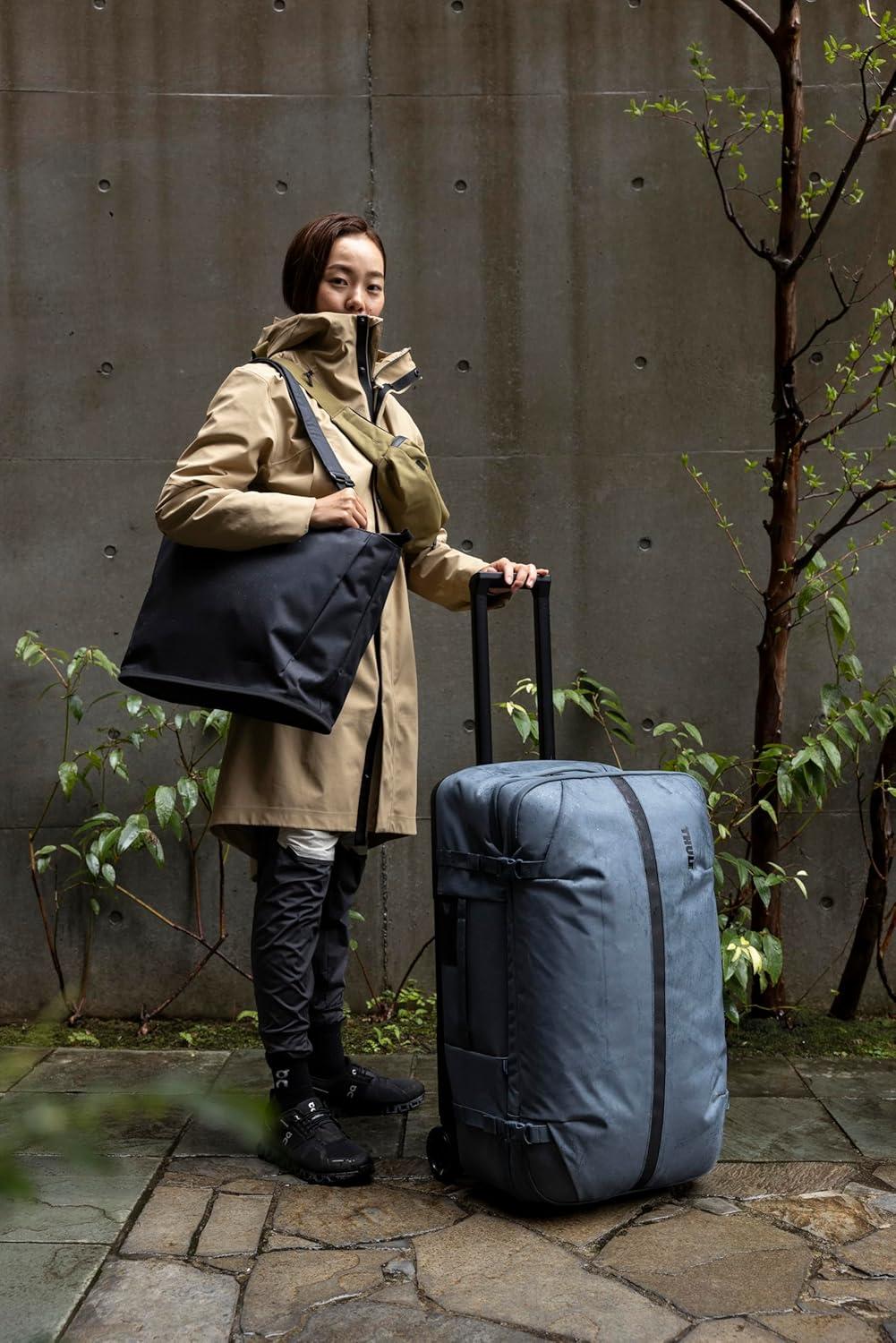 Thule Aion 70cm Wheeled Duffel – Wet/Dirty Storage Pocket – Smooth Rolling Wheels – Interior Compression Straps – Lockable Exterior Zippers – 100% Recycled PFC-Free Waxed Canvas Fabric(Dark slate)