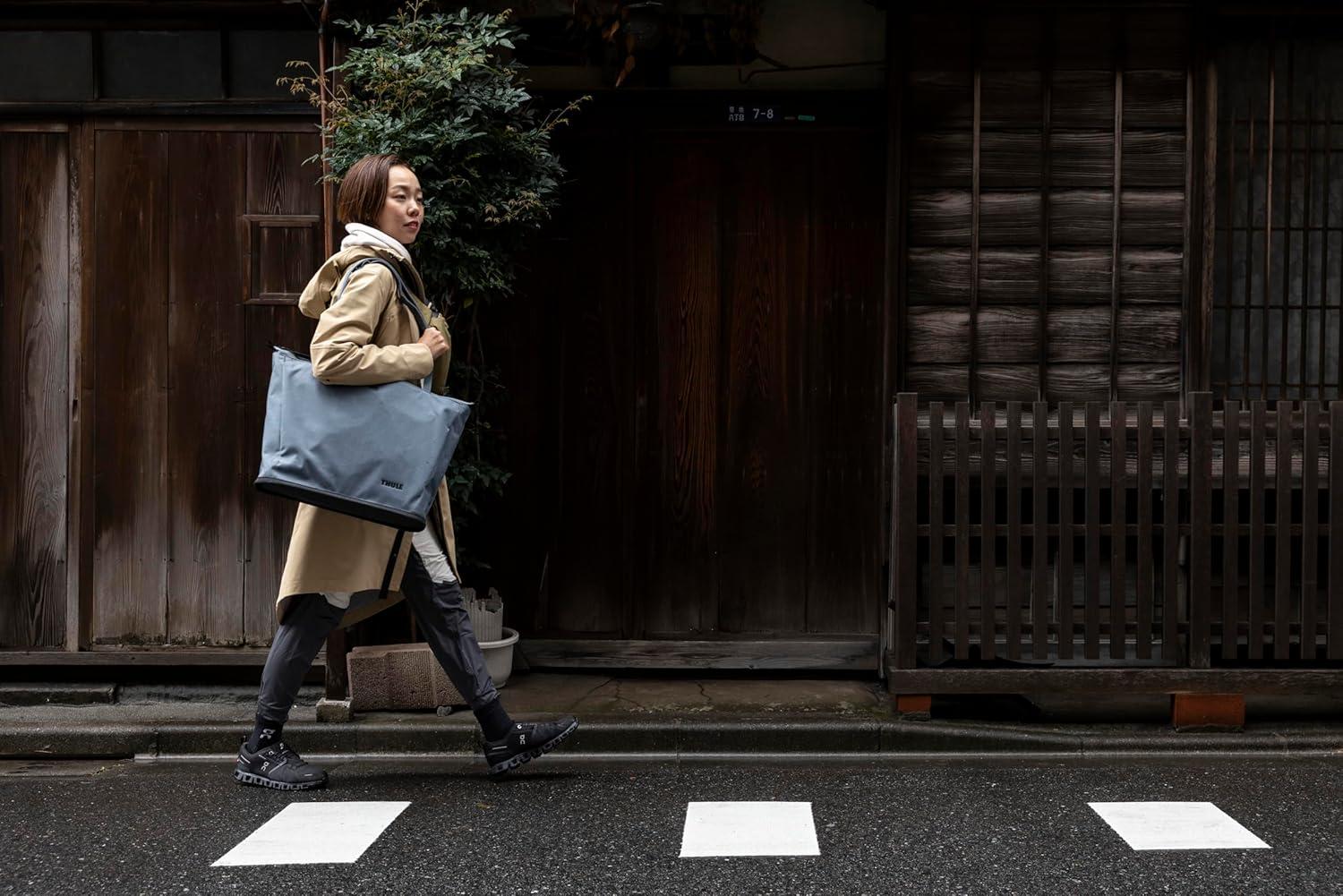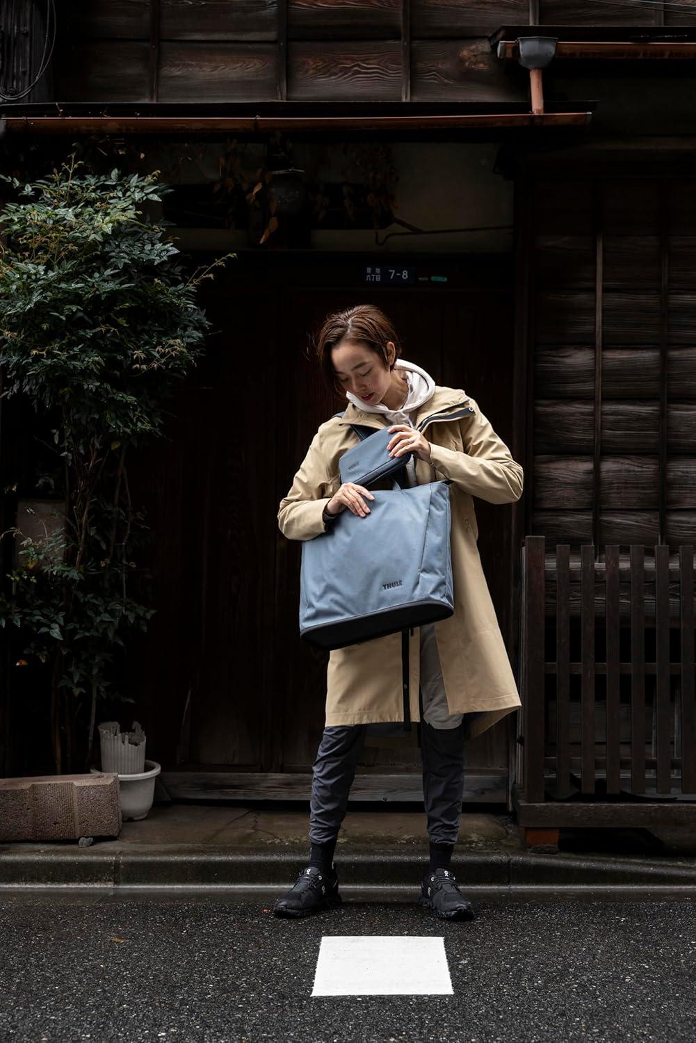 Thule Aion Tote Bag – Recycled Waxed Canvas, 16″ Laptop Sleeve, Wet/Dry Pocket, Bottle Holder, Detachable Sling(Dark Slate)