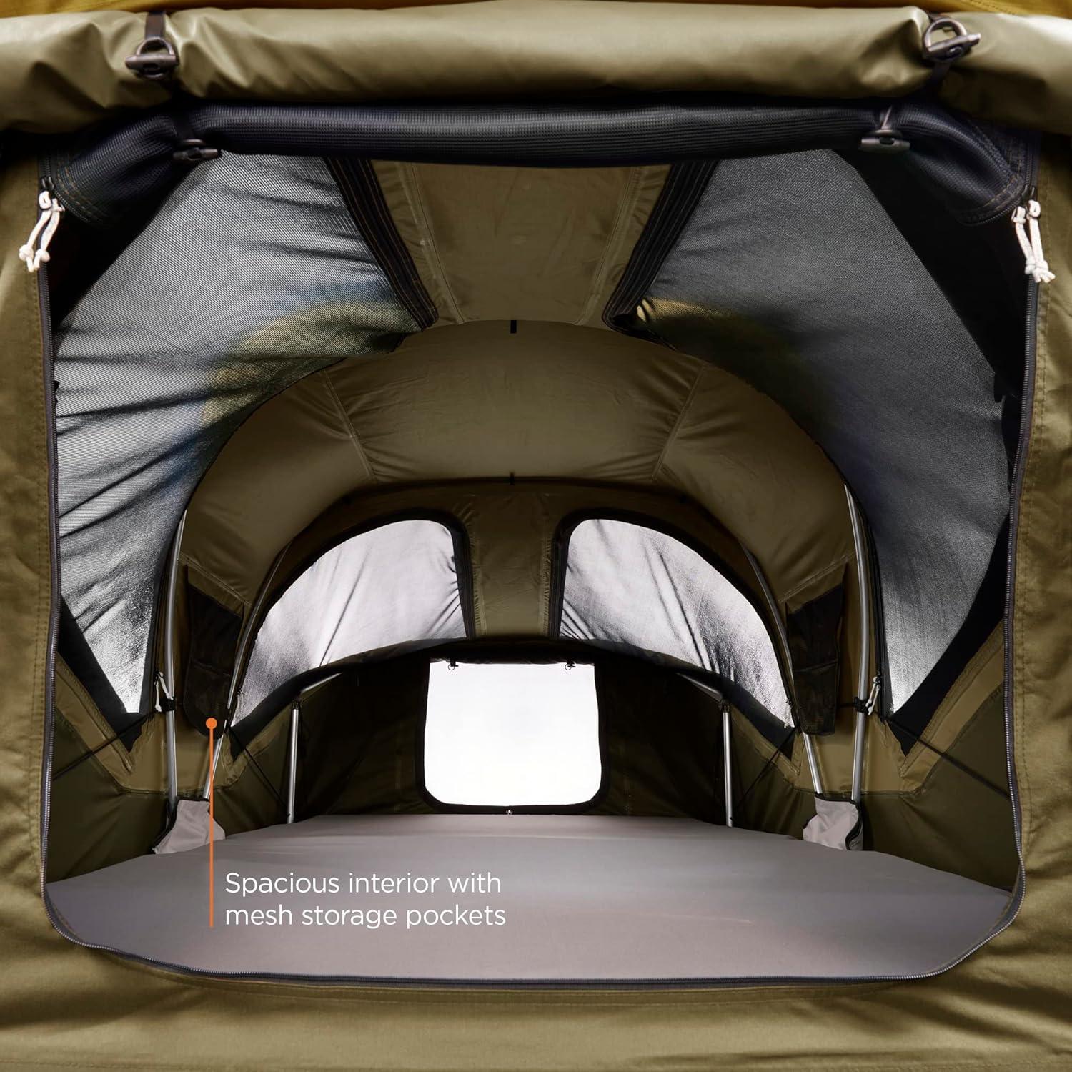 On top of the world, on the top of your car. Thule Approach is a tent that makes adventure travel easier, more comfortable, and more fun. The car top tent maximizes interior space, giving you a great place to hang out in, as well as a comfortable night’s sleep. Made for rugged adventures off the beaten path, this rooftop tent is equally great for local explorations or weekend getaways with family and friends. Transform your vehicle into a home away from home and live the van-life experience no matter what you drive—SUV, sedan, truck, or hatchback.
