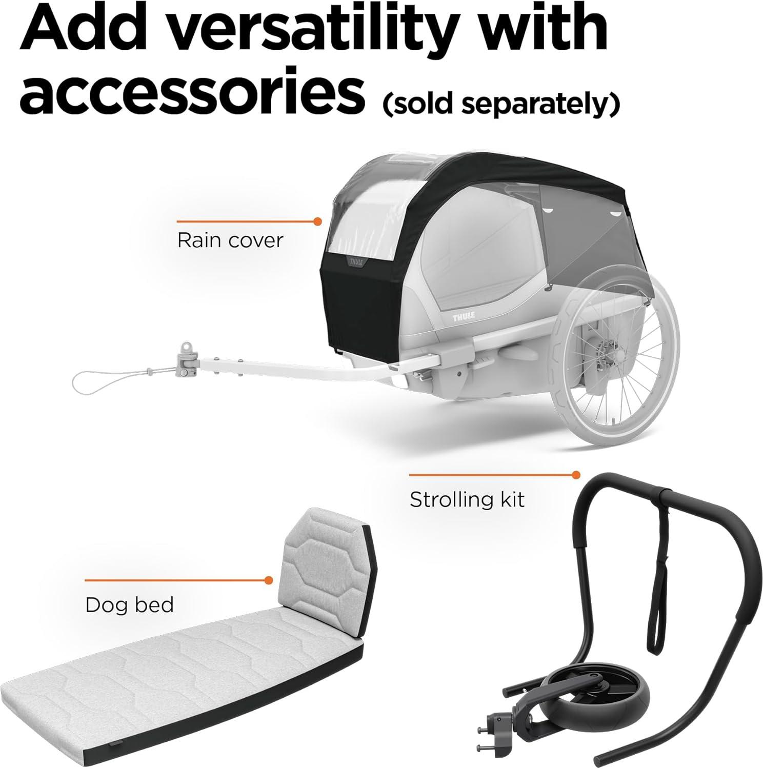 Thule Bexey pet Bike Trailer – Carrier for Small & Large Sized Dogs – Foldable Design – Easy to Connect to Bike – Padded Interior – Converts into Travel Crate – Durable Materials(Large)