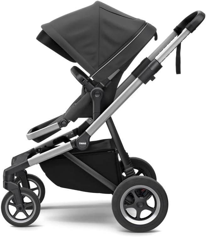 Thule Shine baby stroller, Full-size stroller features, Compact and lightweight design, Reversible seat, Spacious storage basket, Adjustable leg rest, Easy one-hand fold(Black/Black)
