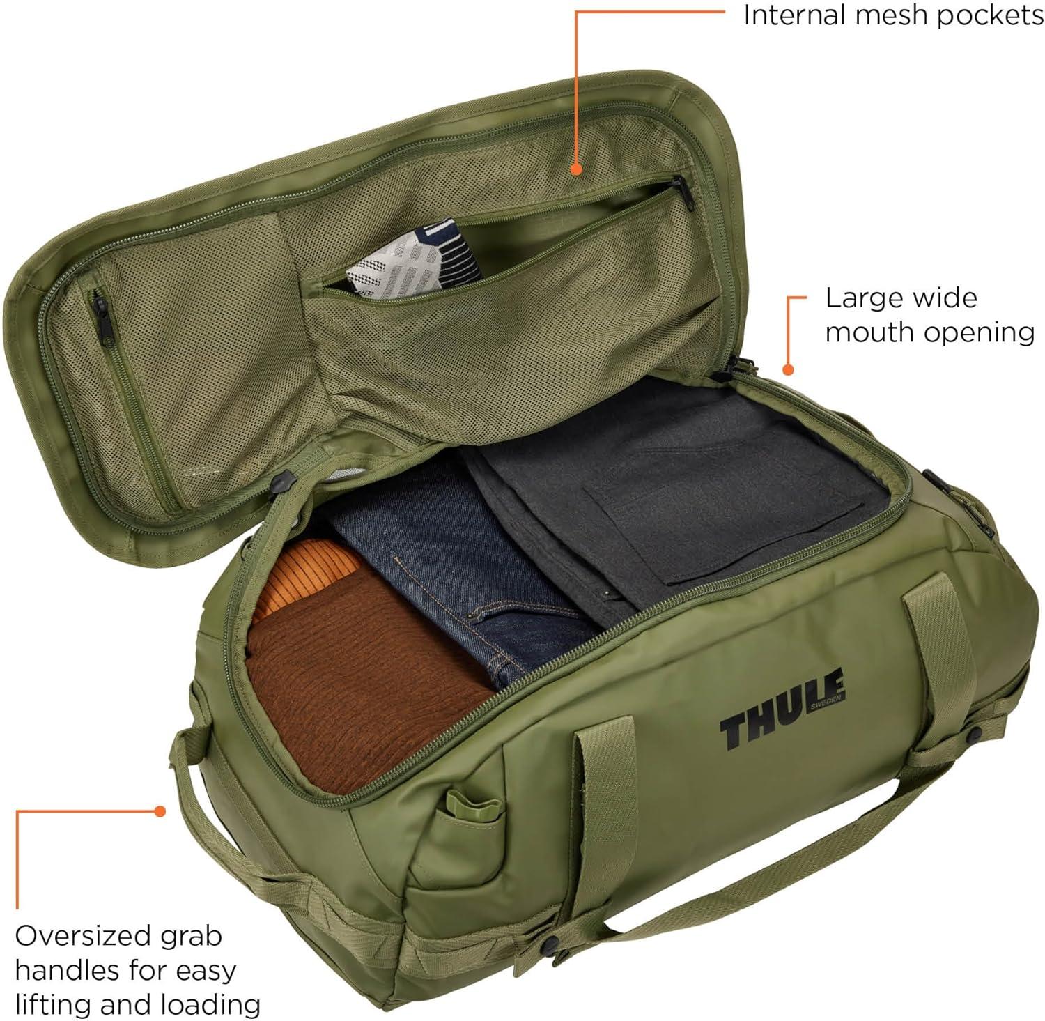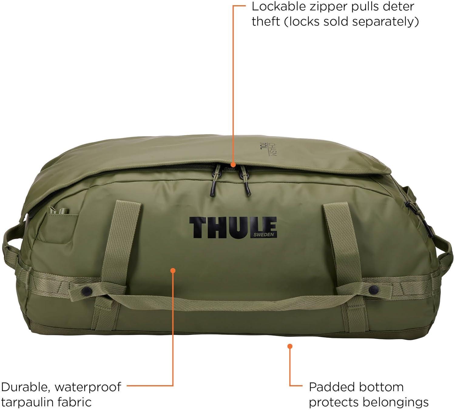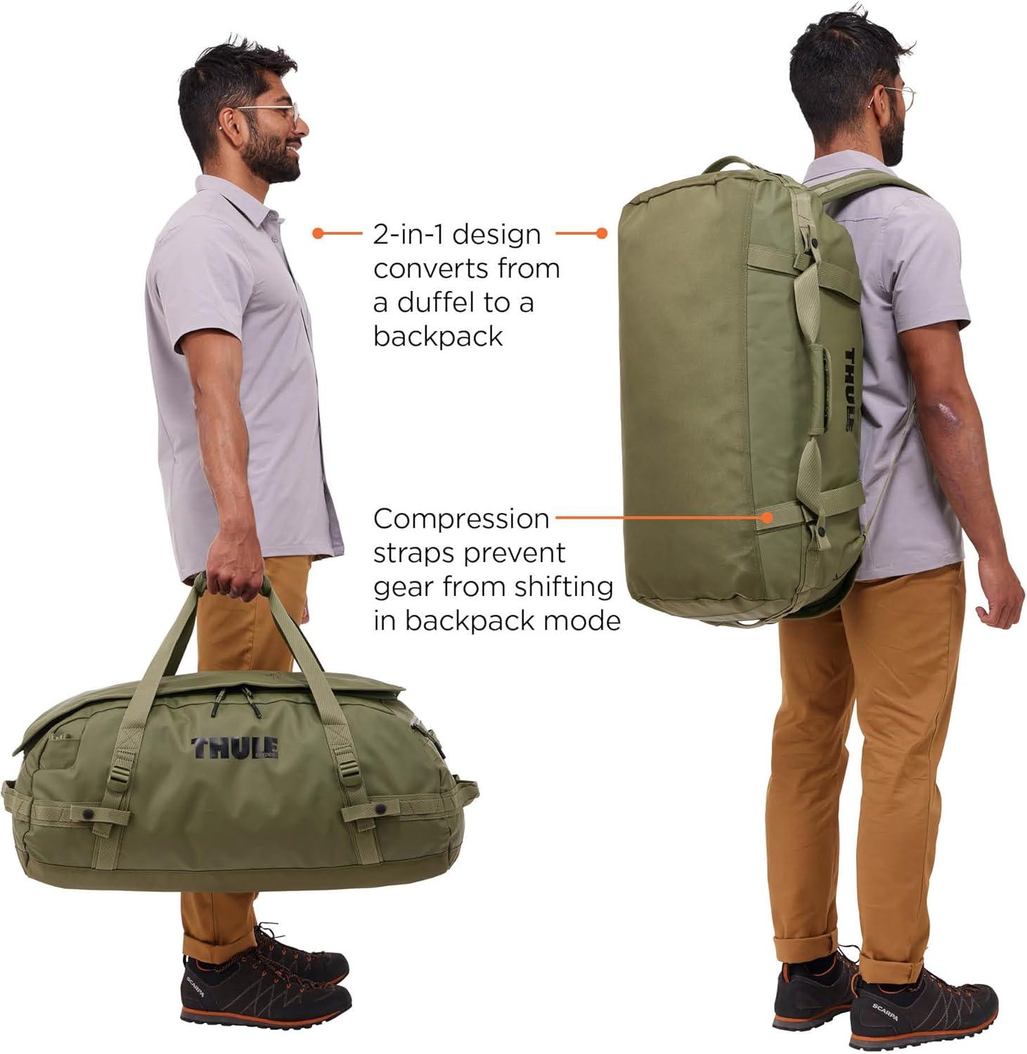 Thule Chasm Duffel bag, Weather-resistant materials, Easy packing, Converts to backpack, Internal pockets, Travel-ready(OLIVINE)