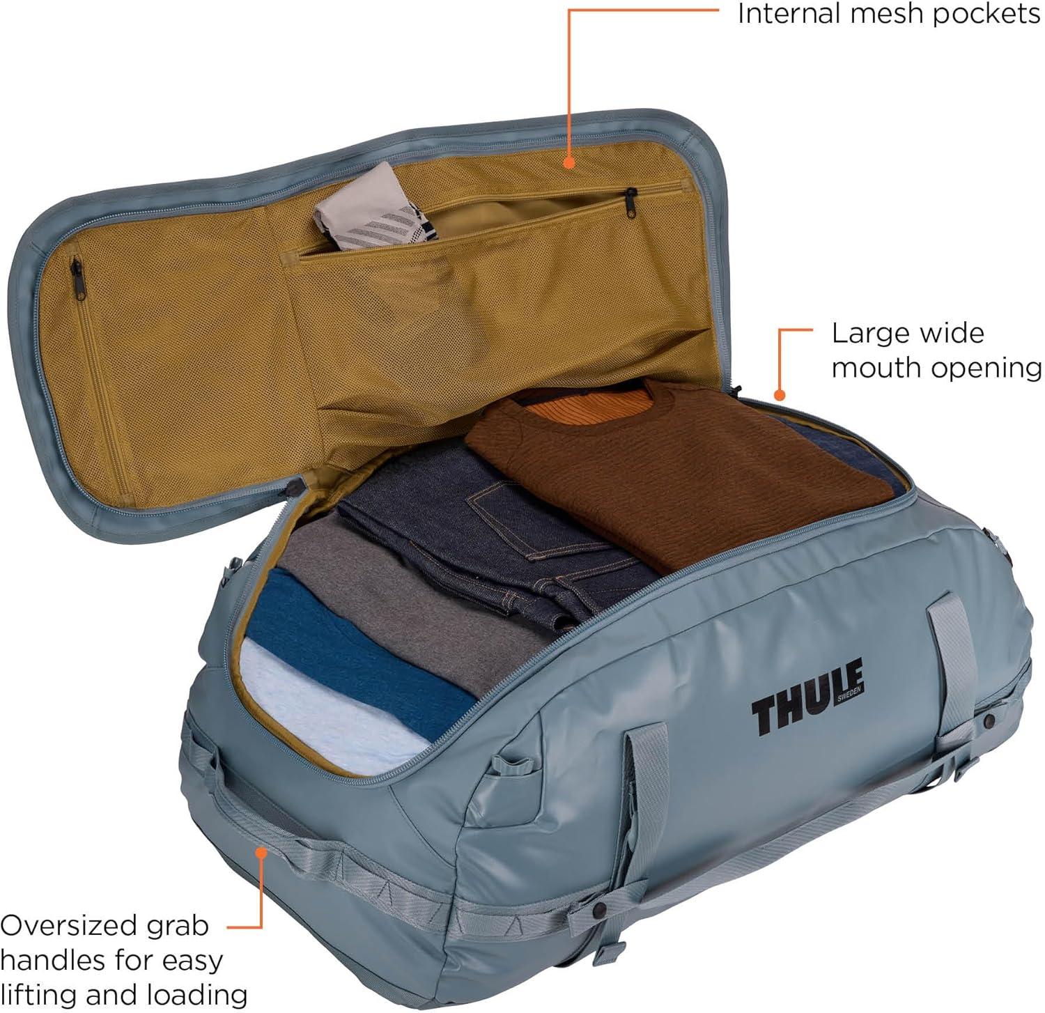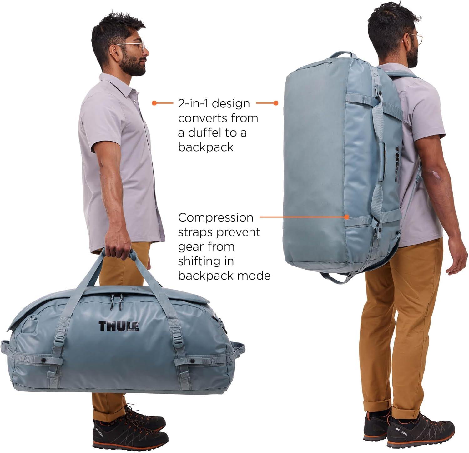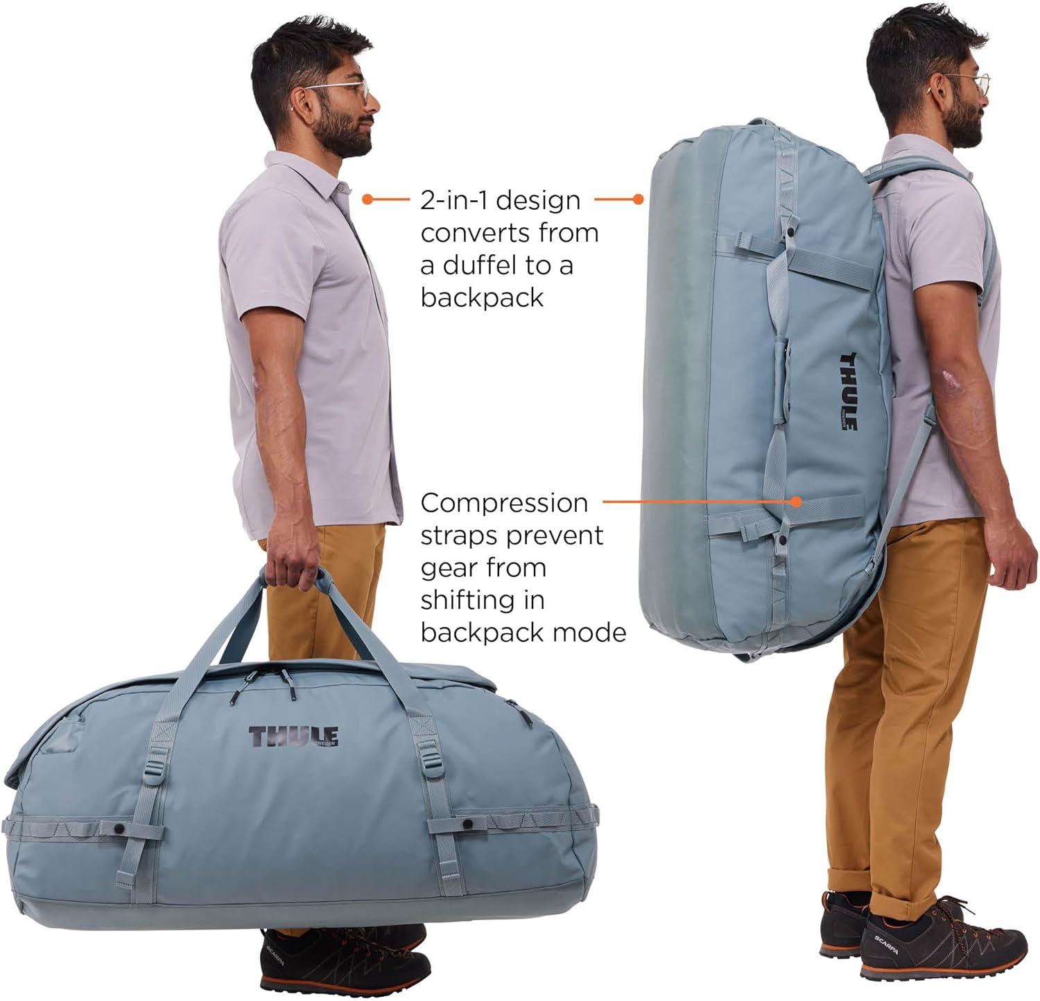 Thule Chasm Duffel bag, Weather-resistant materials, Easy packing, Converts to backpack, Internal pockets, Travel-ready(POND GRAY)