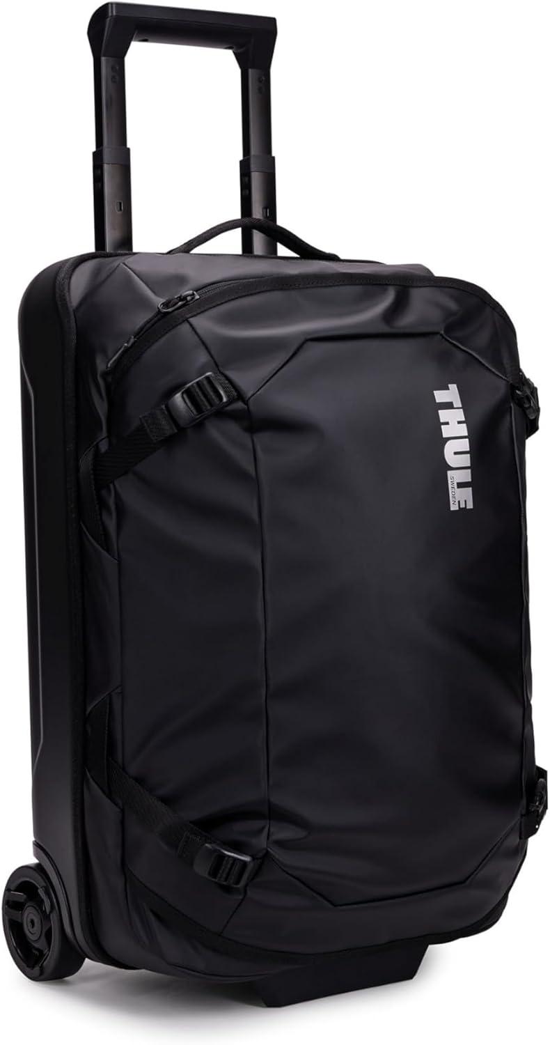 Thule Chasm Luggage collection is made for sport and adventure travel. These weather resistant rollers are designed to withstand the elements of any adventure. Each piece is designed with a duffel style opening with generous packing space for clothing and active gear. The carry on includes an internal max fill line to help you stay carry on compliant. You can also pack an additional 2”when traveling without size requirements. The large wheeled duffel is considered checked luggage and includes external compression straps to adjust the size of your load from one excursion to the next. Constructed with water-resistant tarpaulin fabric to protect belongings from the elements, plus oversized rear wheels to glide over tough terrain, this luggage collection is ready for a weekend away or your next camping adventure.