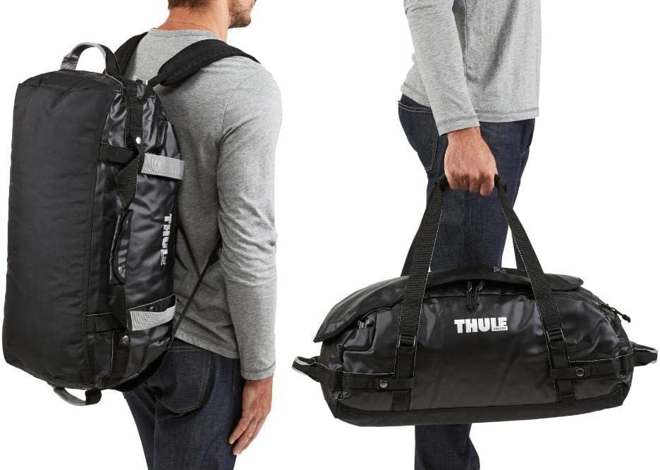A rugged, weather-resistant duffel with removable backpack straps and wide mouth opening.