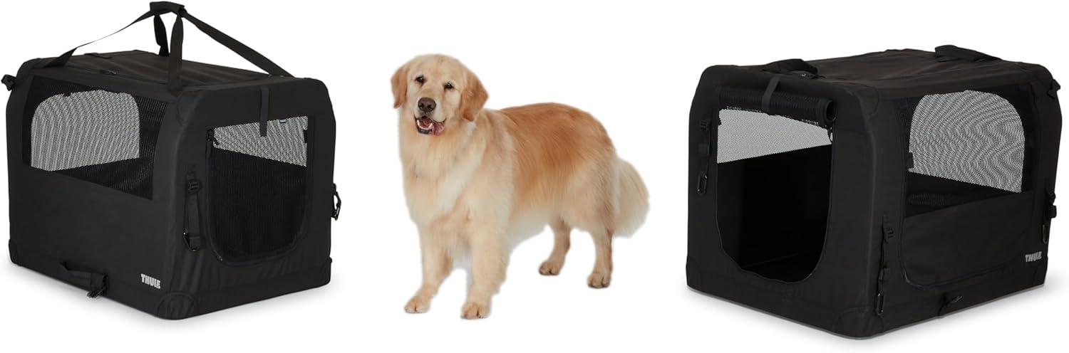 Thule Collapsible Dog Kennel Size Medium – Easy to Assemble – Mesh Doors for Easy Access – Zippered Panel – Folds Down Easily(Large)