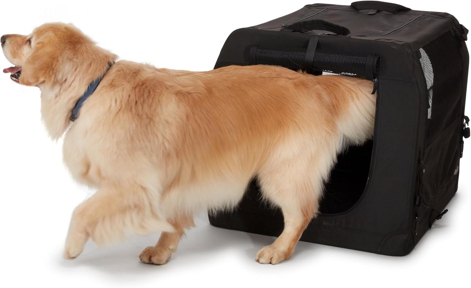 Portable, collapsible dog crate provides a safe and secure way to transport your pet.