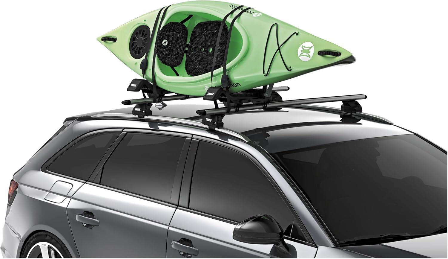 Thule Hull-a-Port XTR – Kayak j-style roof rack – Carry up to 2 kayaks – Folds flat – Pre-assembled – Locks to roof rack – Universal mounting up to 80.5mm wide load bars