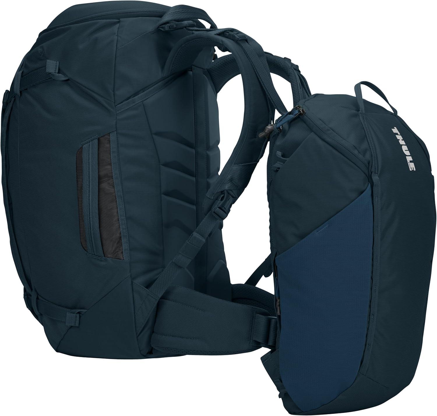The Thule Landmark is the perfect adventure travel bag for weeks or months away. Combining the organization of luggage and the comfortable carry of a trekking pack, this backpack will keep you organized and comfortable on any trip. A suitcase-style opening and internal compression straps allow you to easily pack and retrieve gear, knowing everything will stay securely in place. Large SafeZone compartment protects a phone, sunglasses, cords, and small valuables. A covert CashStash pocket keeps money and a passport safe from pickpockets. Additional safety features include LoopLocks, lockable zipper pulls, and a built-in sternum strap whistle. Since carrying comfort is paramount in adventure travel, this backpacking pack is designed with gender-specific fits and a suspension system to carry the pack across countries and continents with ease. The collection of travel backpacks offers to carry on and checked bag options. The streamlined design eliminates dangling straps with tuckaway options or a back panel cover to avoid damage in overhead bins, cargo compartments, and luggage carousels. Designed with the perfect balance of organization, comfort, and anti-theft features, the Thule Landmark is the perfect travel companion for all your adventure travel.