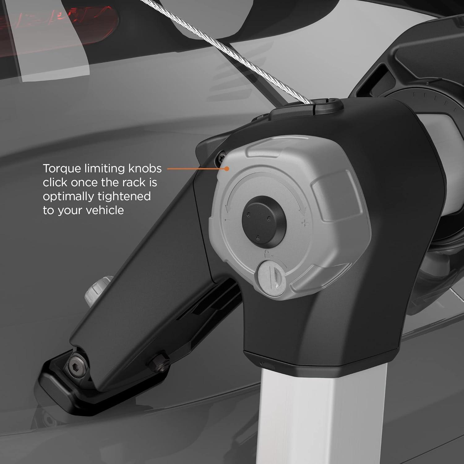 Thule AcuTight torque limiting knobs once bike arms are optimally tightened around bike frames