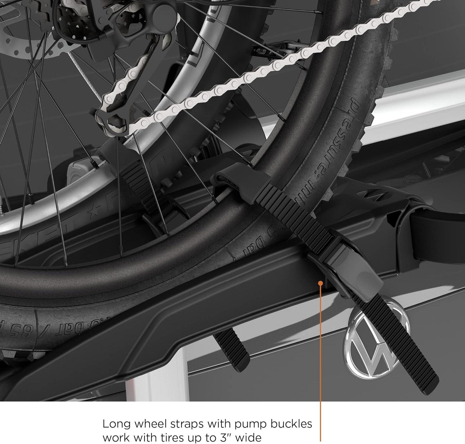 Accommodates up to 127cm/50″ wheel base bikes and tires up to 3″ in width