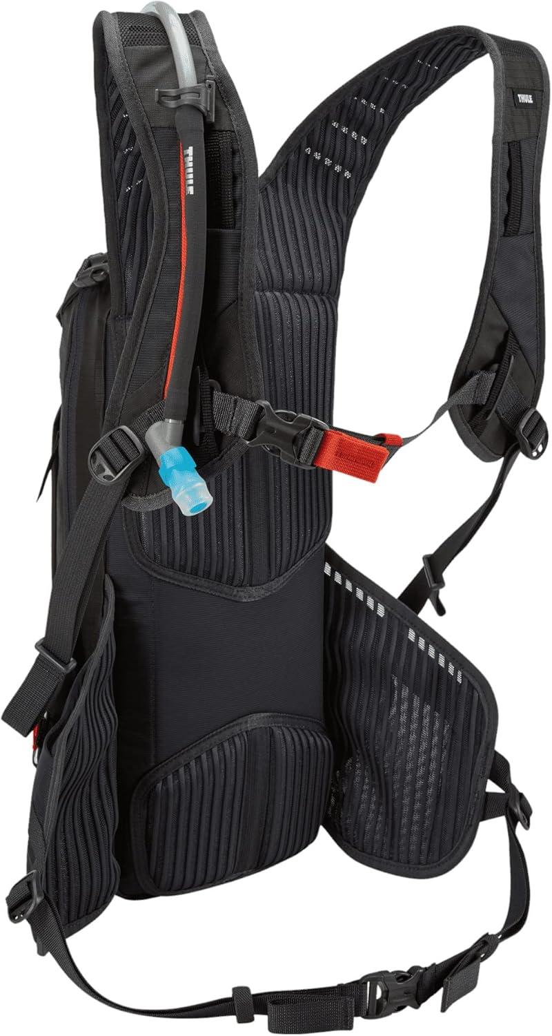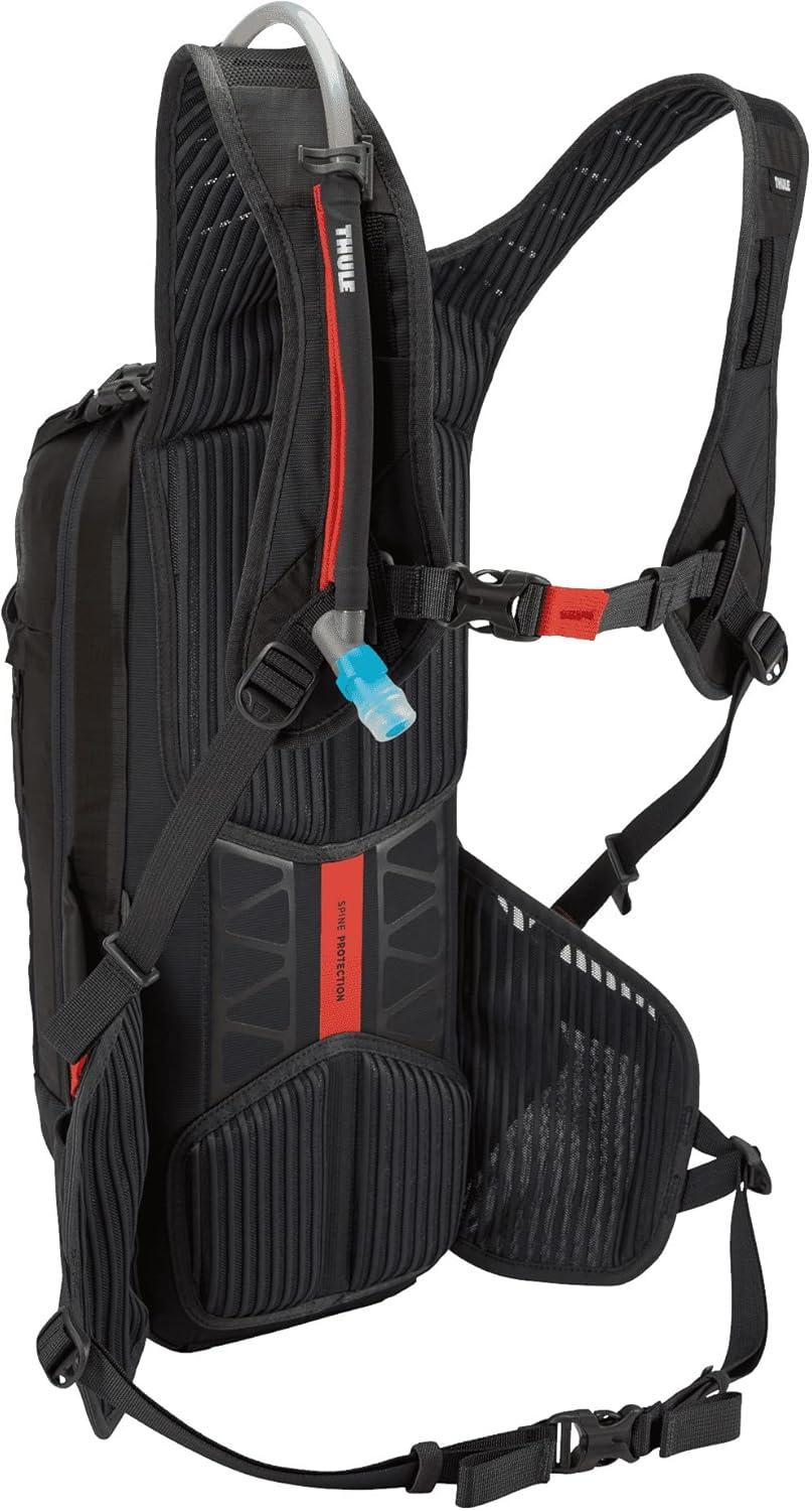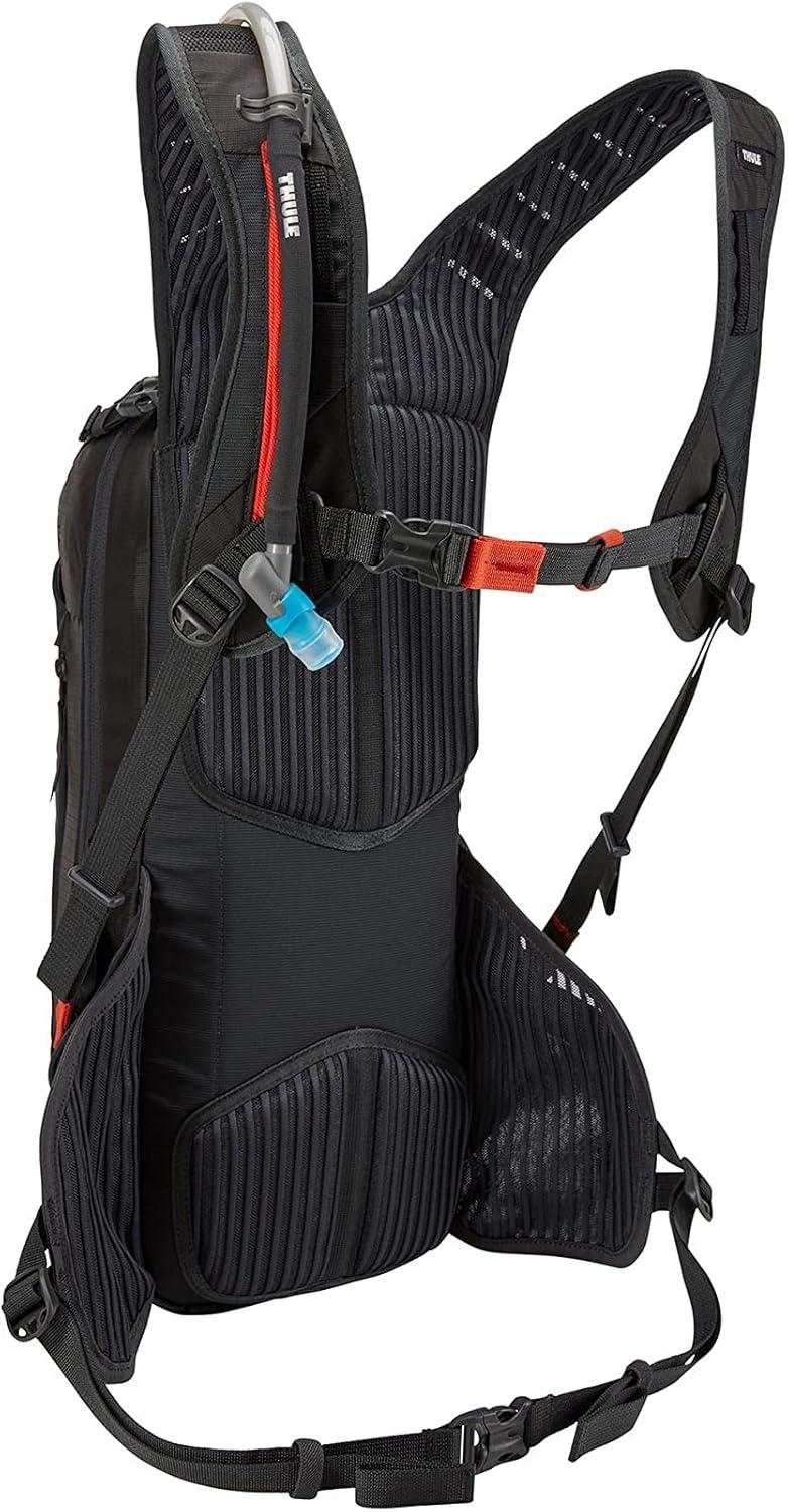 Designed for aggressive trail riding and Enduro racing, the Thule Rail hydration packs will keep you hydrated and comfortable on the trail. Constructed with a low center of gravity, stability rails and a linear-pull chest strap, these mountain biking hydration packs offer ultimate stability by eliminating movement while descending aggressively, jumping or taking sharp turns. Thule Rail integrates the unique magnetic Thule ReTrakt hose that’s always right where you want it. After drinking, the ReTrakt hose returns securely to its place so you can keep your hands on the bars and your eyes on the trail. Each mtb pack features a 2.5L HydraPak reservoir includes a slide closure for easy cleaning and a locking bite valve to prevent unintended spills before or after the ride. Easily attach any assortment of knee and elbow pads along with full-face helmet or removable chin bar to the Thule Rail. Whether a race requirement or simply peace of mind on an exposed backcountry ride, the removable Koroyd spine protector in the Thule Rail 12 Pro exceeds CE certification standards for protection without weighing you down.