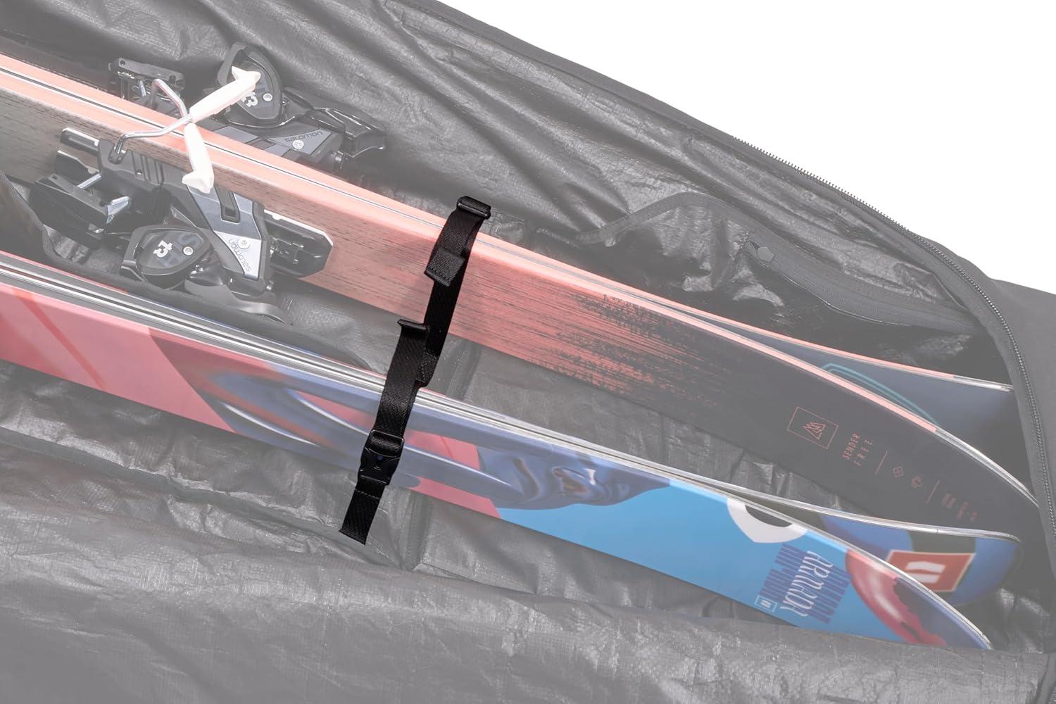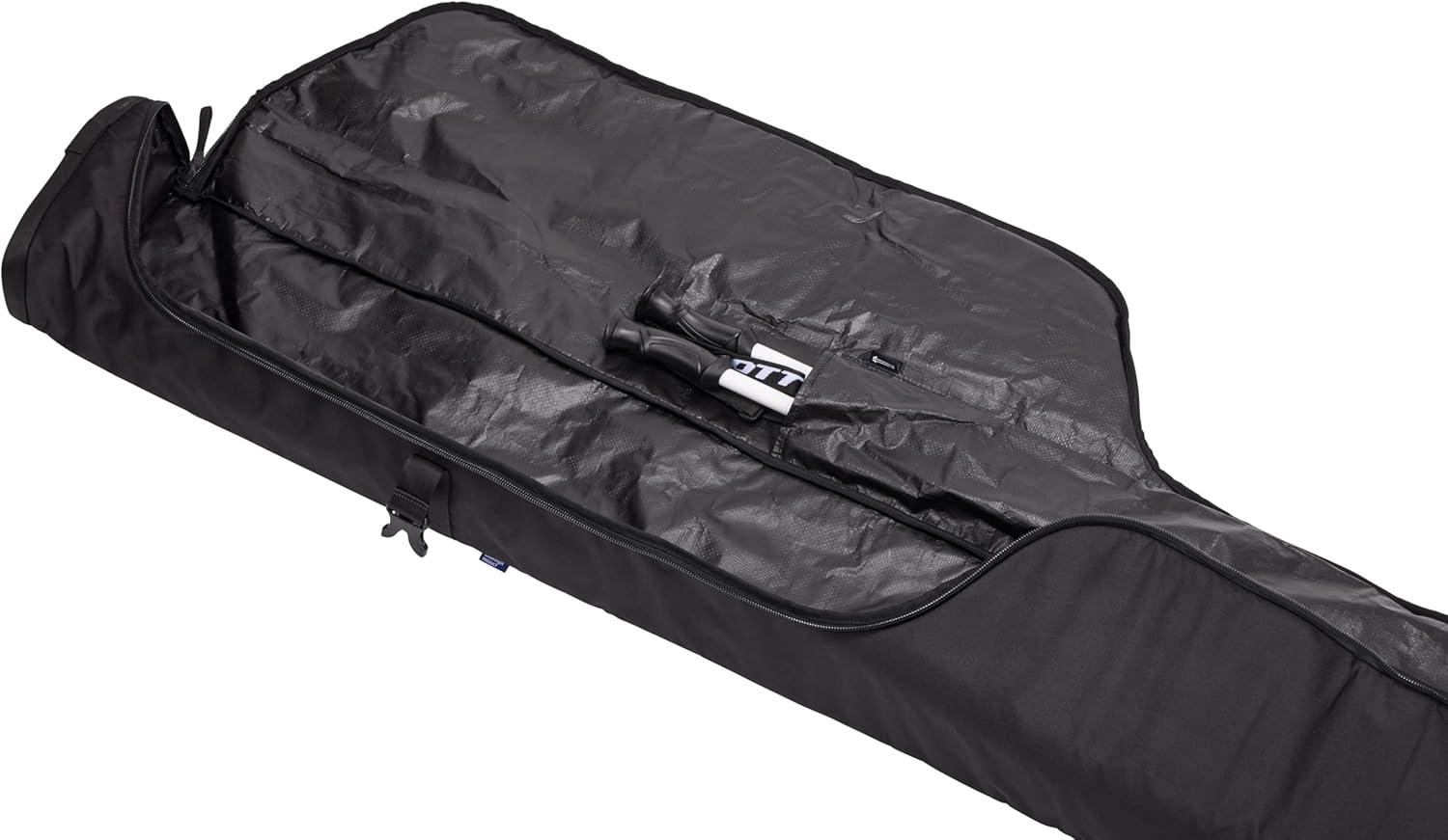 Thule ski and snowboard bags provide extra protection and an easier journey when you are heading off to the slopes. The Thule RoundTrip Ski Bag is designed to store and transport a single pair of alpine skis or two pairs of Nordic skis and poles in the dedicated pole compartment. The S-shaped zipper that coils around the bag simplifies stowing and retrieving your gear. This ski bag has a removable padded shoulder strap and multiple grab handles for a comfortable transport. The internal compression straps keep gear from shifting while in transport, and added cinch-top ski sleeves provide additional cargo space and protection. Deter theft with durable YKK zippers that are lockable (locks sold separately).