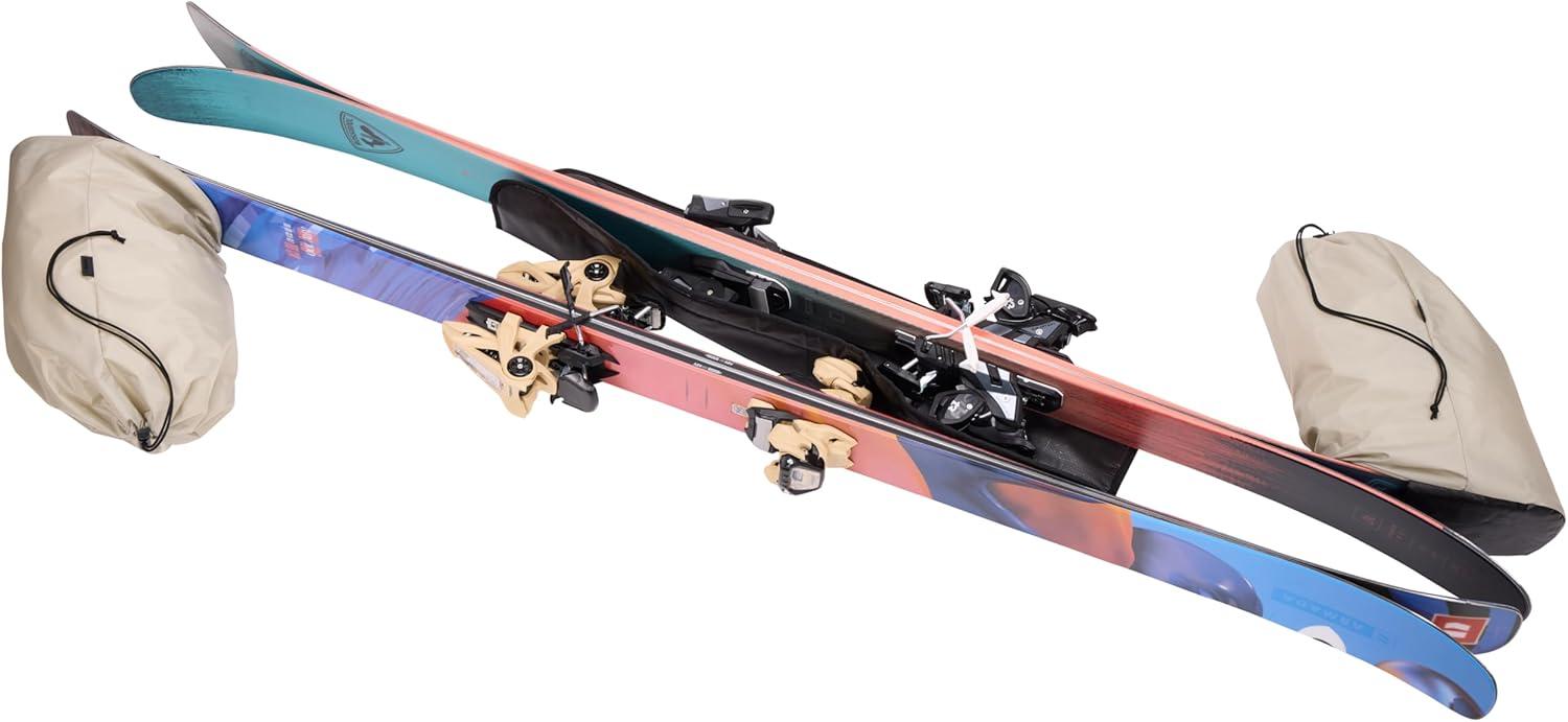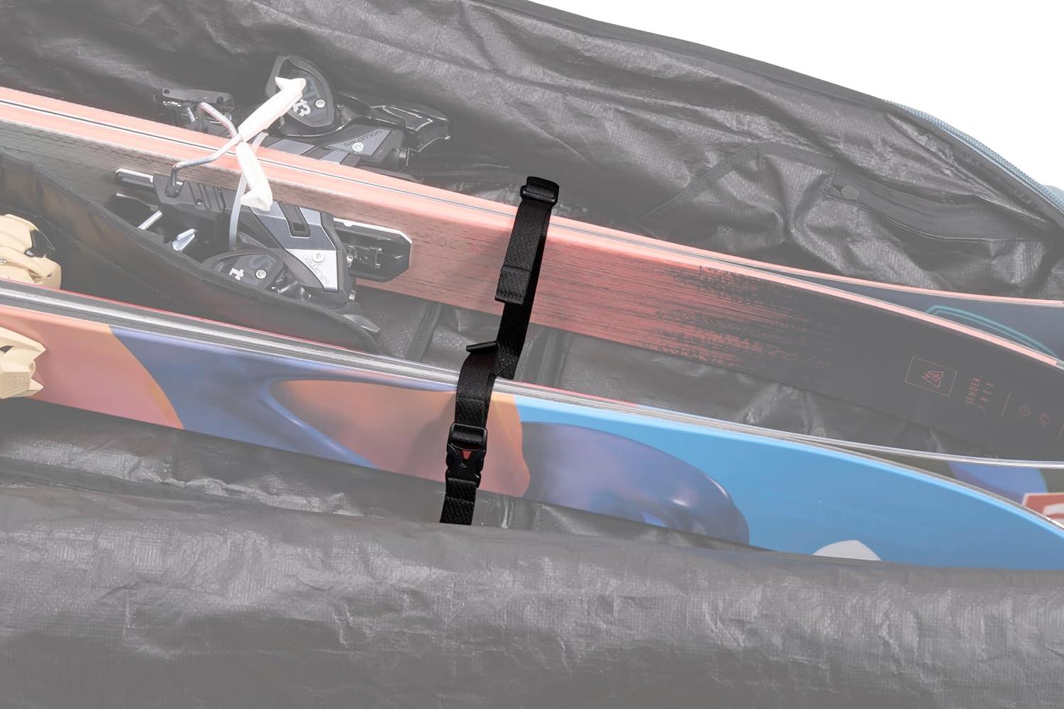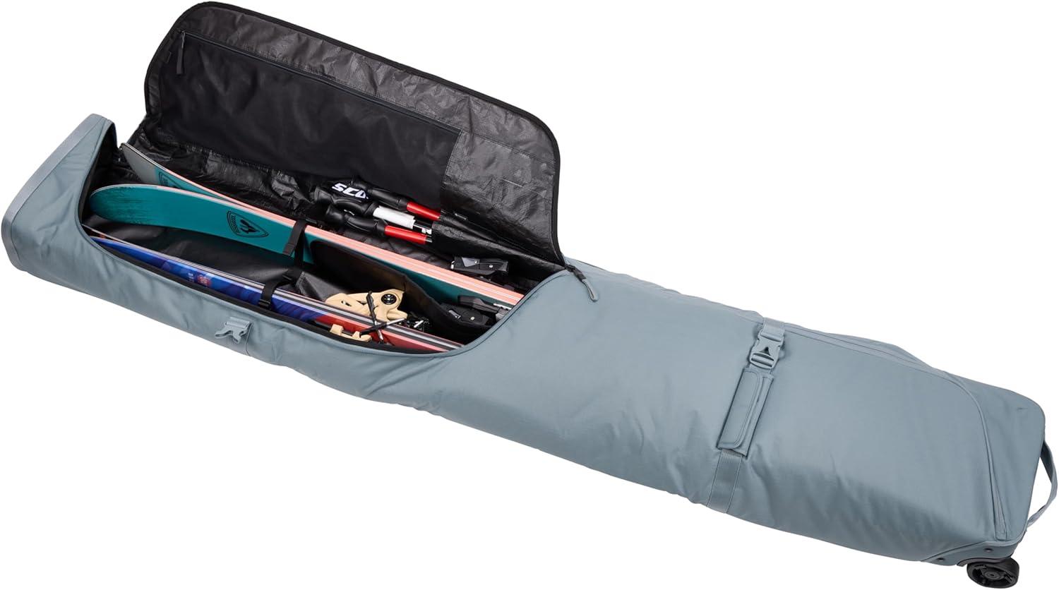 Thule ski and snowboard bags provide extra protection and an easier journey when you are heading off to the slopes. The Thule RoundTrip Ski Bag is designed to store and transport a single pair of alpine skis or two pairs of Nordic skis and poles in the dedicated pole compartment. The S-shaped zipper that coils around the bag simplifies stowing and retrieving your gear. This ski bag has a removable padded shoulder strap and multiple grab handles for a comfortable transport. The internal compression straps keep gear from shifting while in transport, and added cinch-top ski sleeves provide additional cargo space and protection. Deter theft with durable YKK zippers that are lockable (locks sold separately).