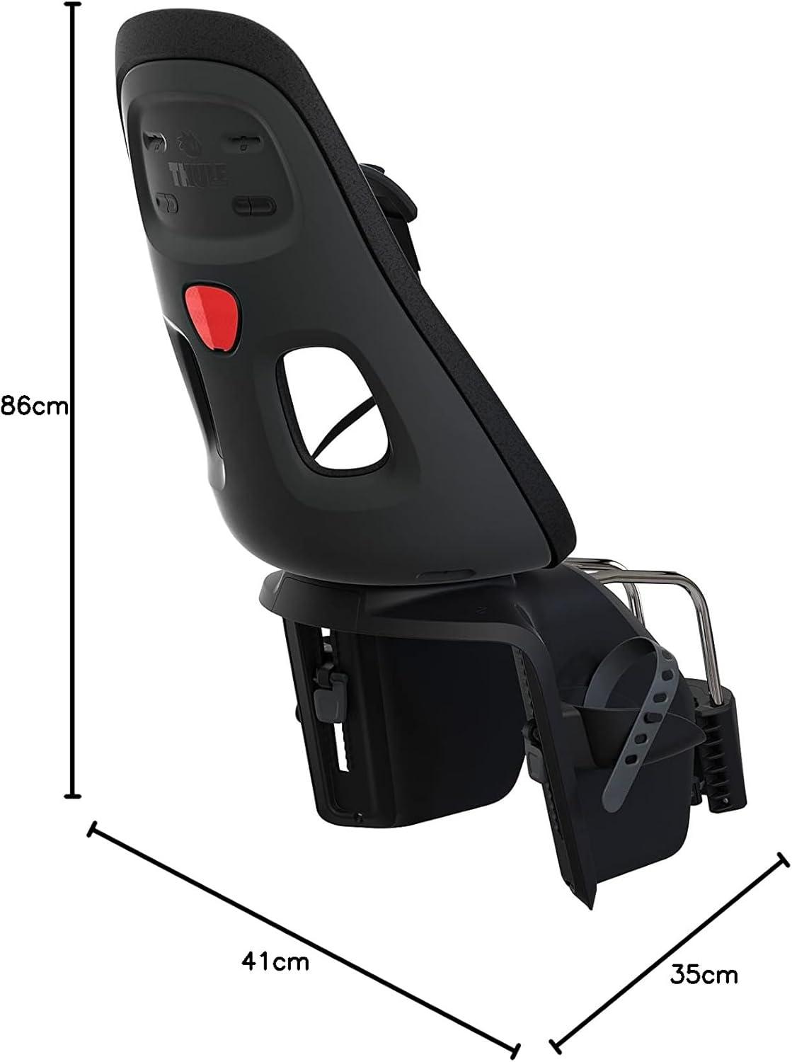 Get outside and stay active as a family with the Thule Yepp Nexxt Mini rear-mounted child bike seat. Safe and easy to use, this baby bicycle seat allows you to ride as a family on daily commutes or longer biking adventures. Designed with an adjustable 5-point safety harness, a magnetic childproof buckle and a soft, shock absorbing seat, your little co-pilot is will stay safe, secure and comfortable on any bike ride. Thule toddler bike seats are built with water-repellent material making them easy to clean. Adjustable footrests and straps grow with your child, making it the ideal bike carrier for kids from 9 months – 6 years old (up to 40 lbs). Consult a pediatrician for children under 1 year old.